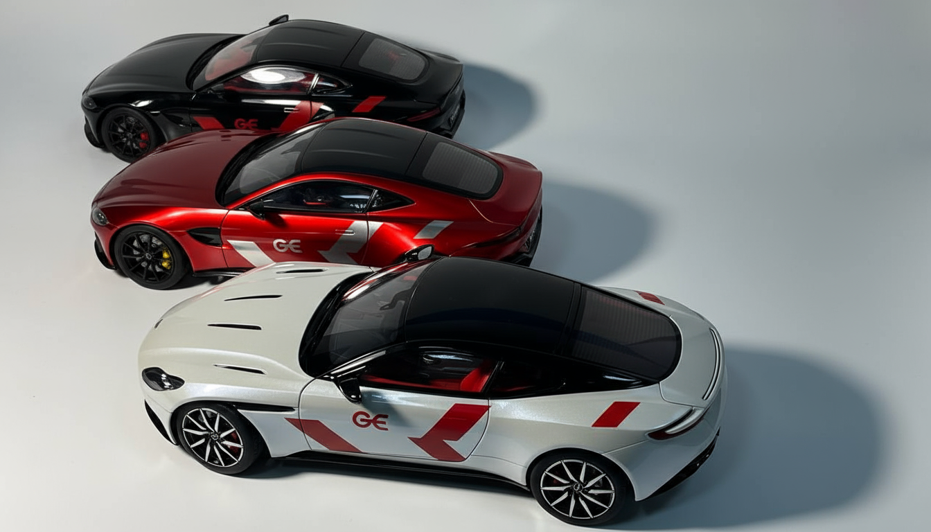 На модели автомобилей масштаба 1:18 нанесен логотип и элементы бренд-бука компании заказчика.
